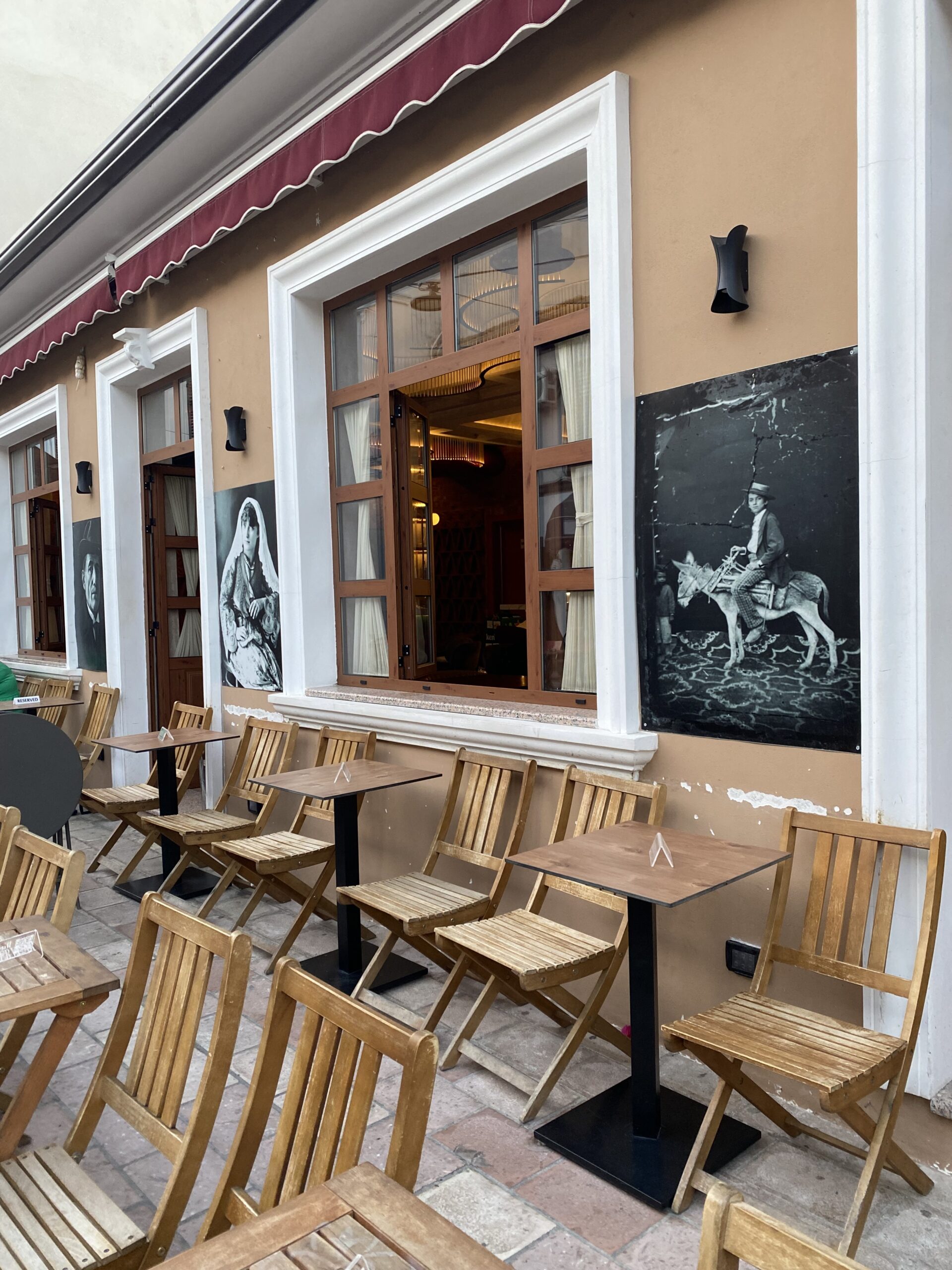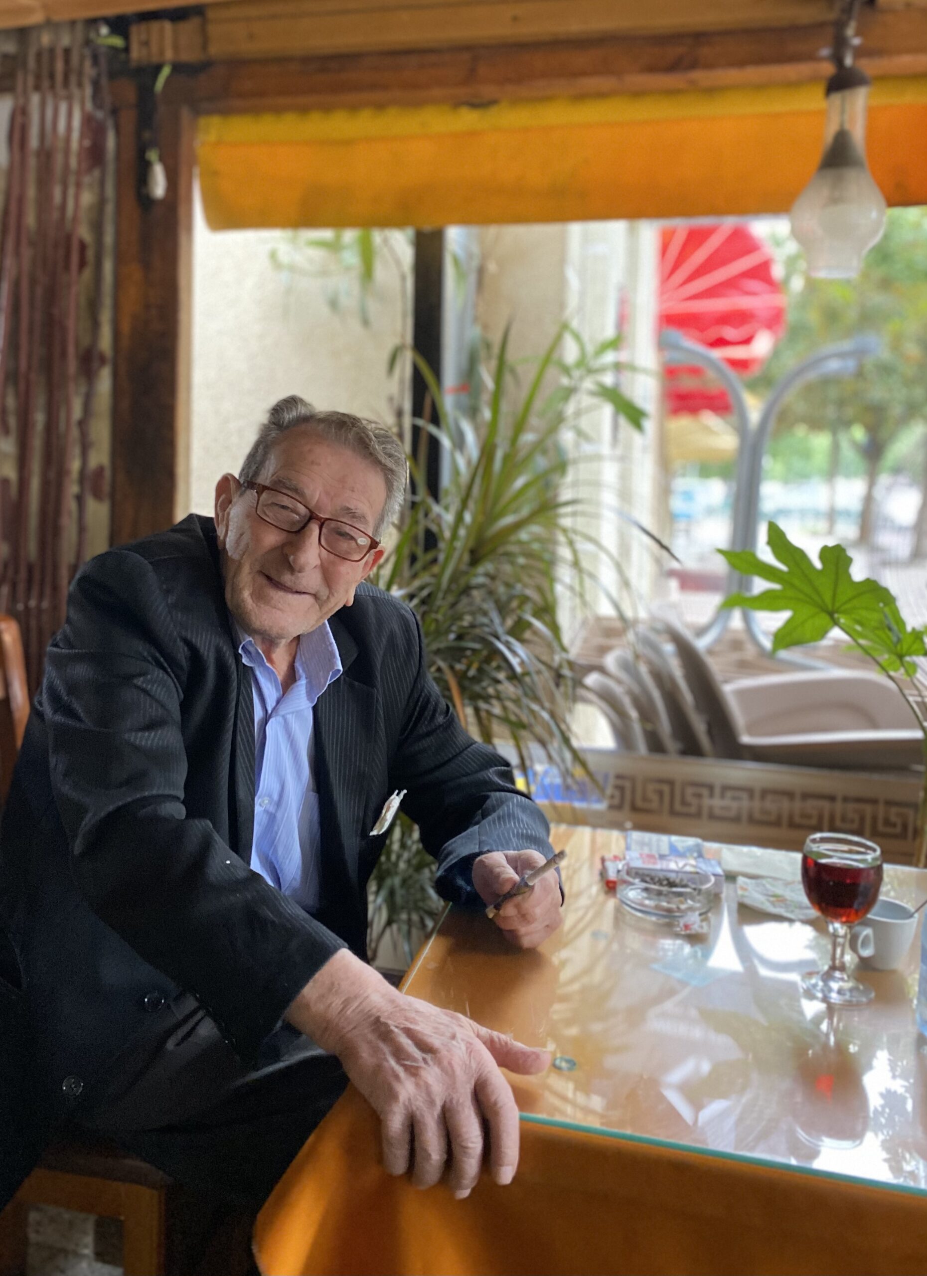 Juoksin baarin ohi ja siellä oli niin hellyyttävän näköinen vanha pappa. Oli tullut kainalosauvoillaan tupruttelemaan ja aamun viinille ja kahville.