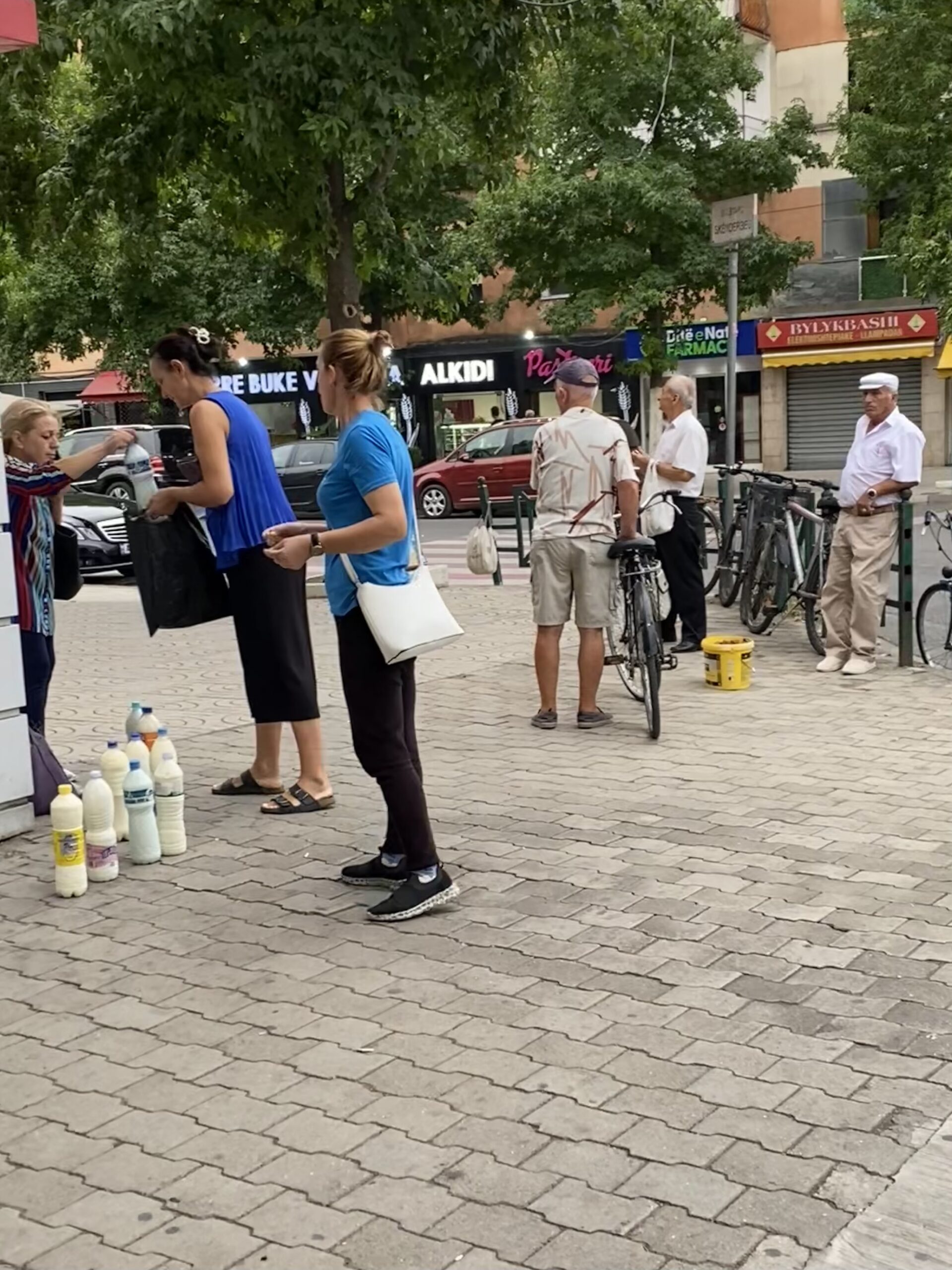 Oli koulujen aloituspäivä ja perheet ostivat kukkia tämän kunniaksi. Kaduilla vähän joka kulmassa oli maidon ja hedelmien suoramyyntiä. Lämpöä siis aamusta parikymmentä, päivällä kymmenen astetta enemmän. Toki maitoa ei ole pastoröity, mutta..
