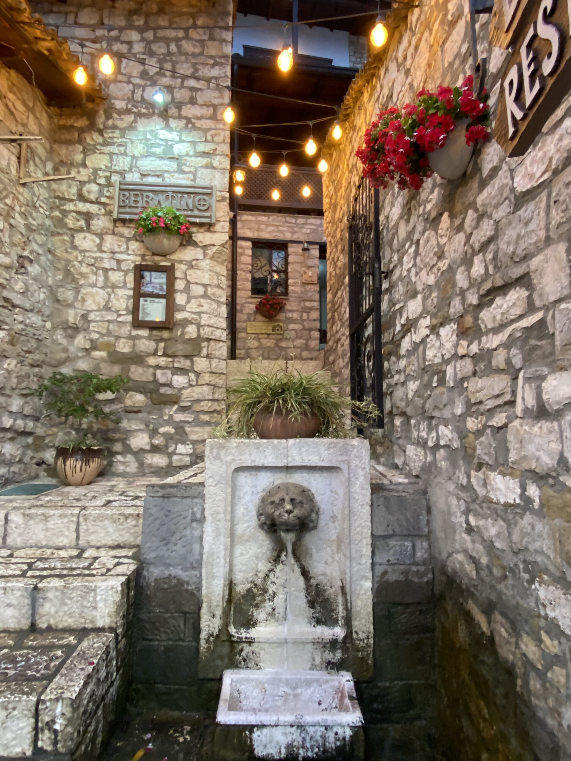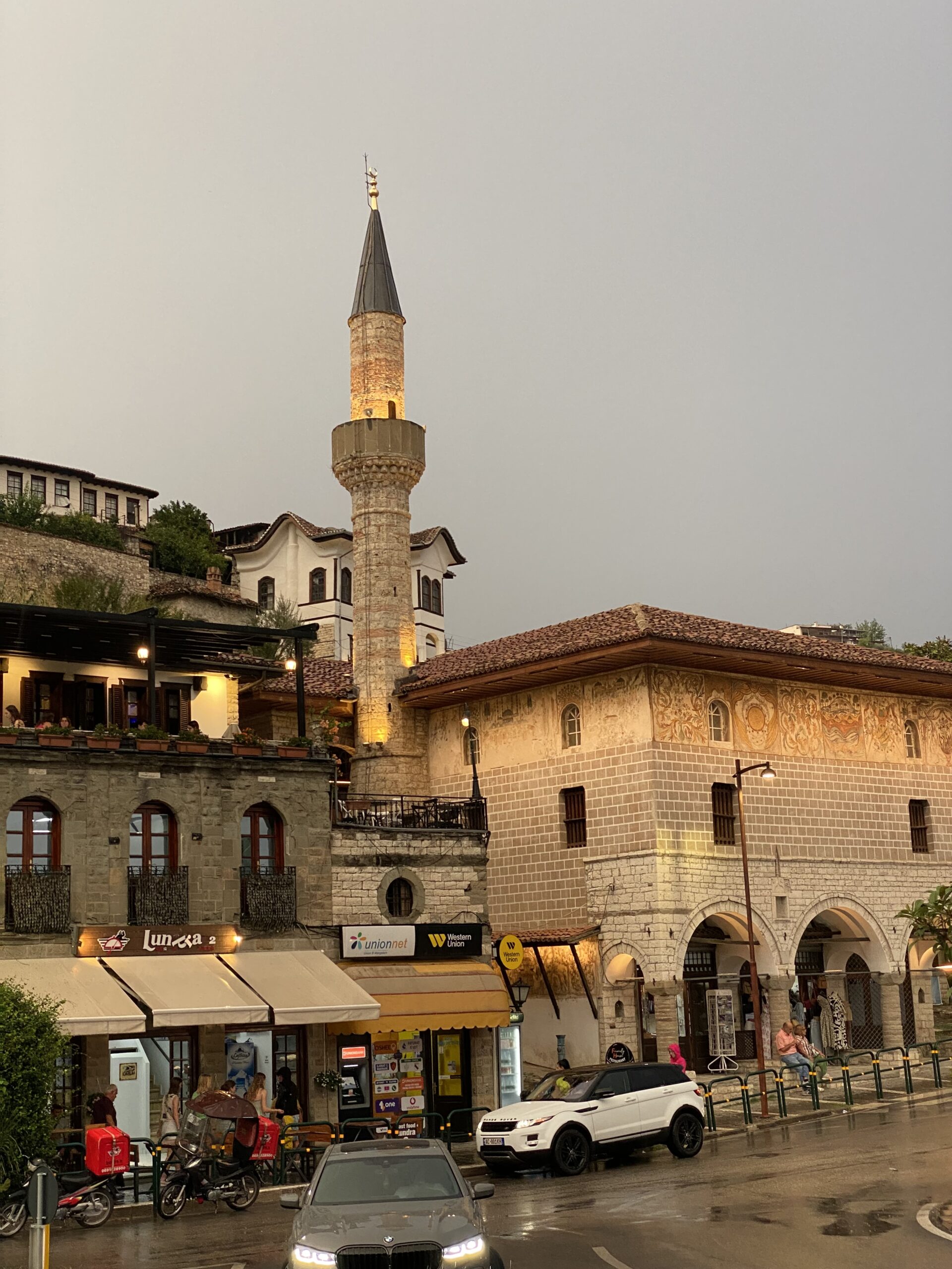 Beratin vanhakaupunki on ottomaaniaikainen vanha kylä, jossa mukulakiviportaita piisaa. Harmillisesti satoi, niin en päässyt nautiskelemaan kujista haluamallani tavalla. Ravintolatarjonta oli hyvää.