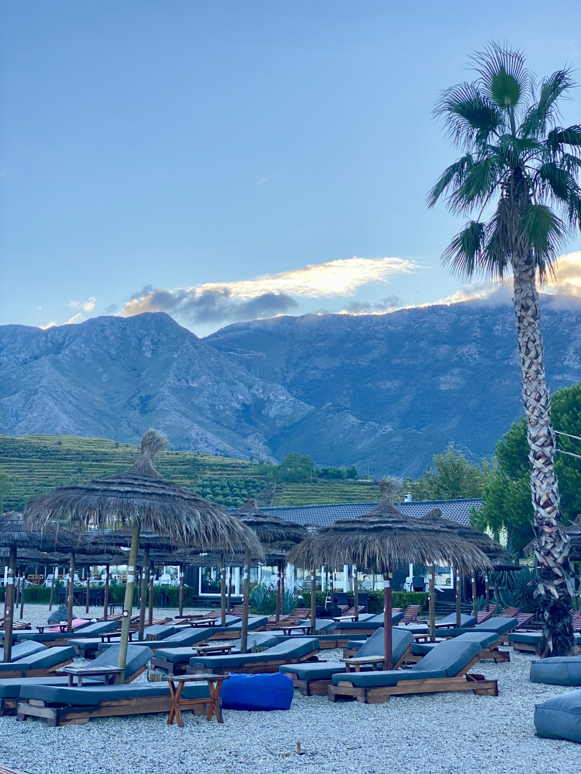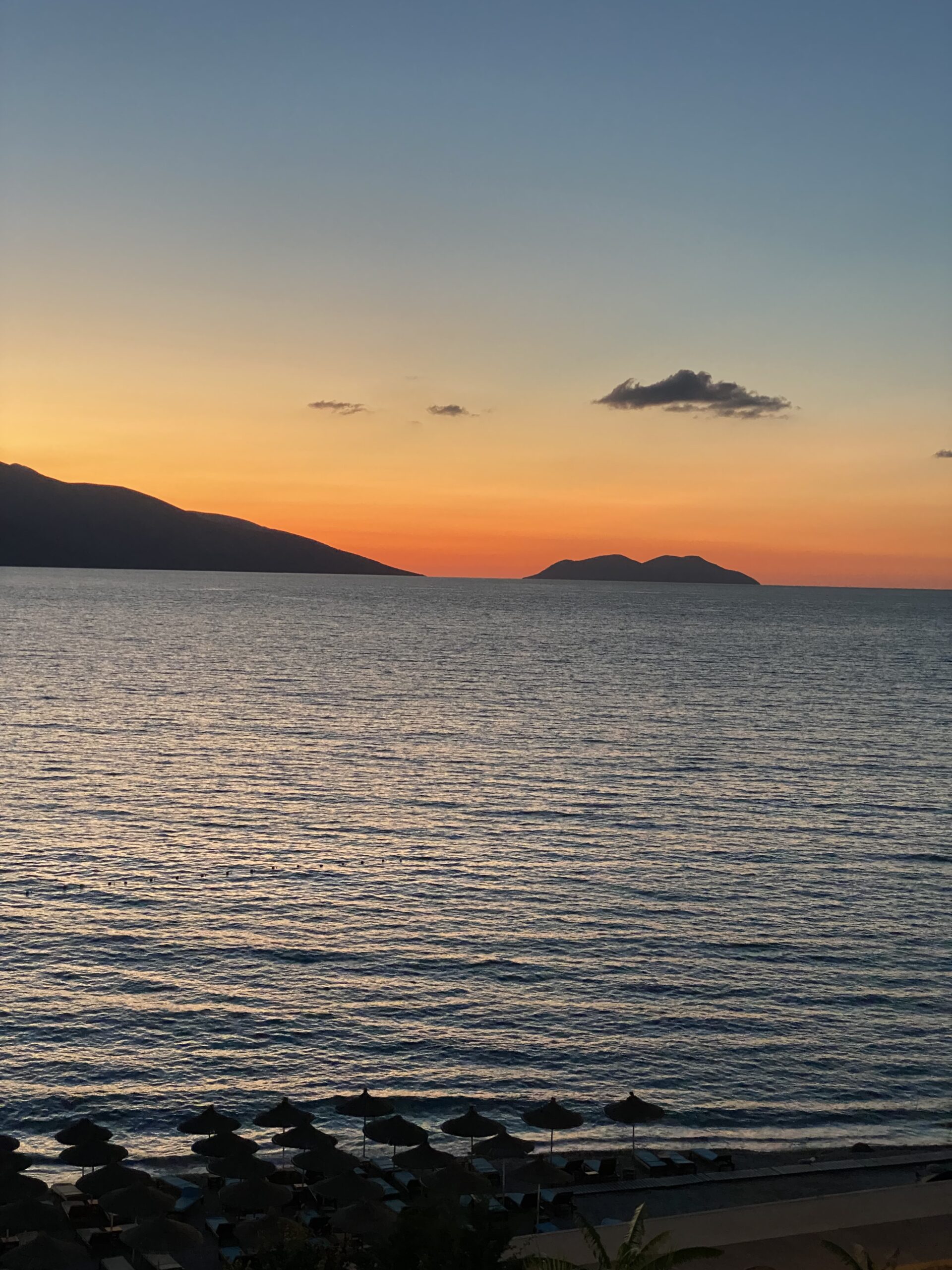 Vuoristoseudun ulkopuolinen Albania on kamala – oli vaan pakko paeta omaan kuplaan. Varattiin hotelli Radhhimë/Orikumin alueelta. Hotellihuone omalla isolla aurinkotuoliparvekkeella ja merinäköalalla Vloresta.