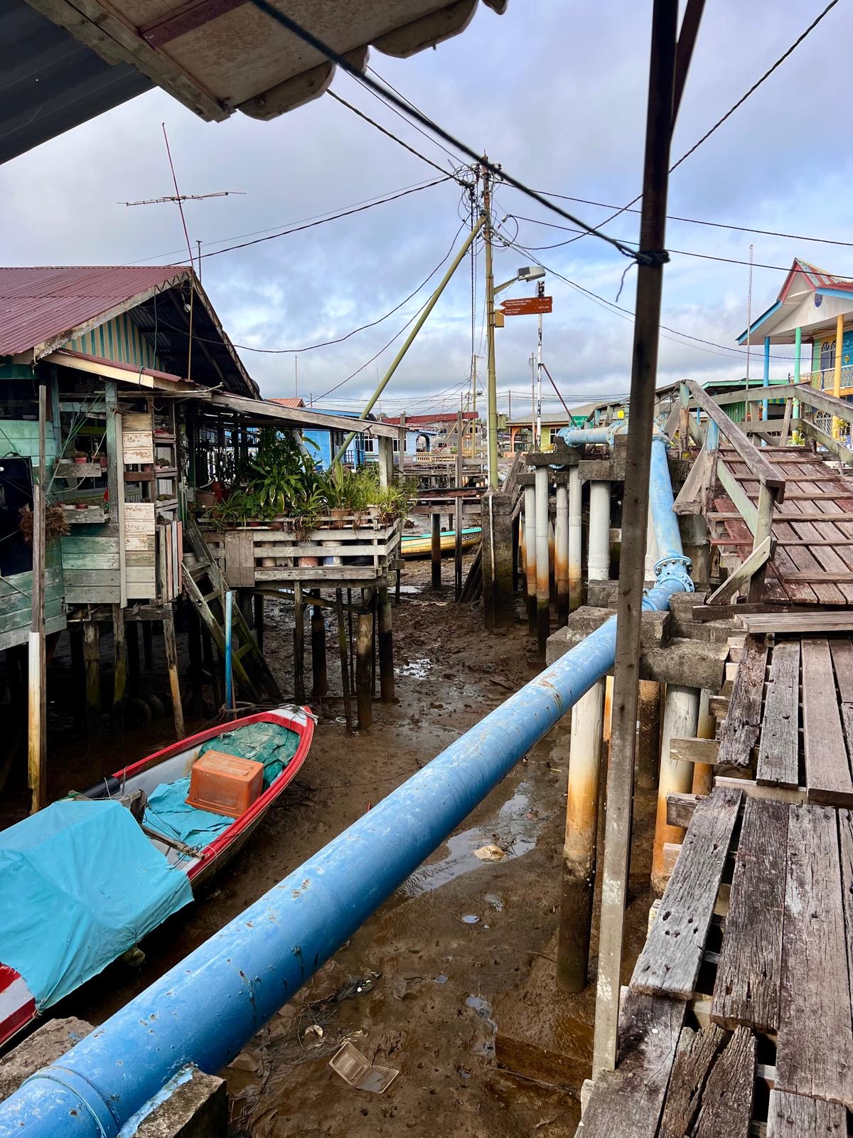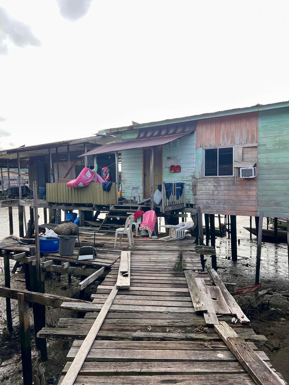 Kampong Ayerin hölkkelikylässä asuvilla ilmastointi, juokseva vesi, asukkailla moottoriveneet eli he eivät ehkä ole (?) niin huono-osaisia kuin näyttää. Hökkelialueella koulut ja sairaala. Mutta siis en ymmärrä, että edes kulkuväyliä ei kunnosteta, sai todella katsoa jalkoihinsa, että ei astu mädän laudan päälle.
