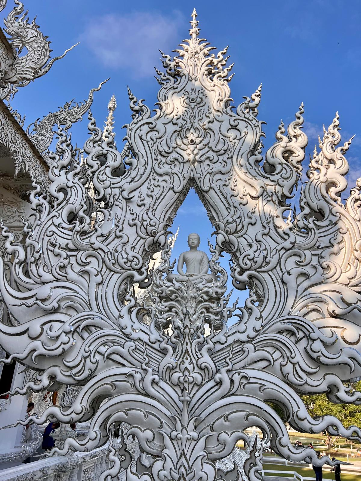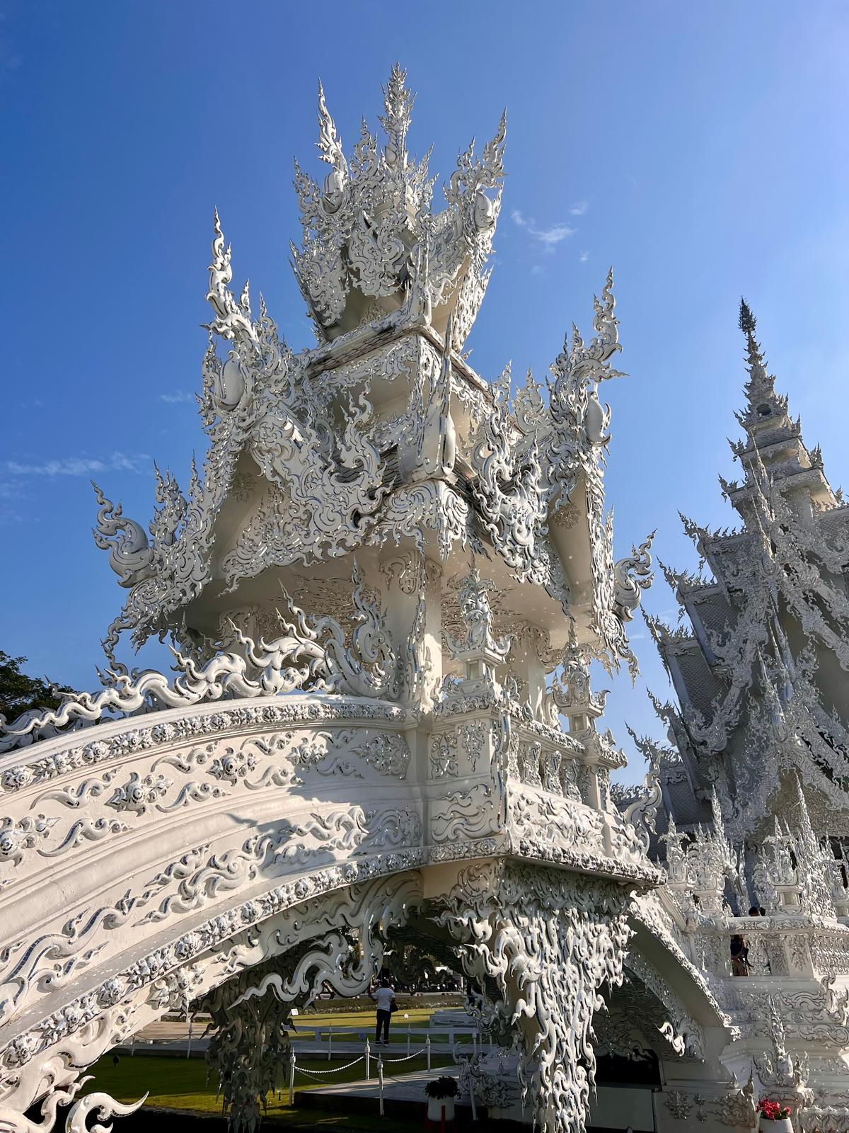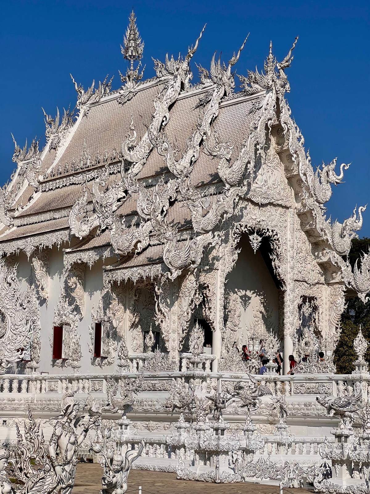 Chiang Rain valkoista temppeliä kutsutaan Thaimaan kauneimmaksi. On se tavallaan, kuin sädehtivä kermakakku. Säteilyefekti syntyy siitä, että rakennus on koristeltupienillä peilinpalasilla. Odottaisi vain hevosten vetämien prinsessakuomuvaunujen pysähtyvän temppelin eteen.