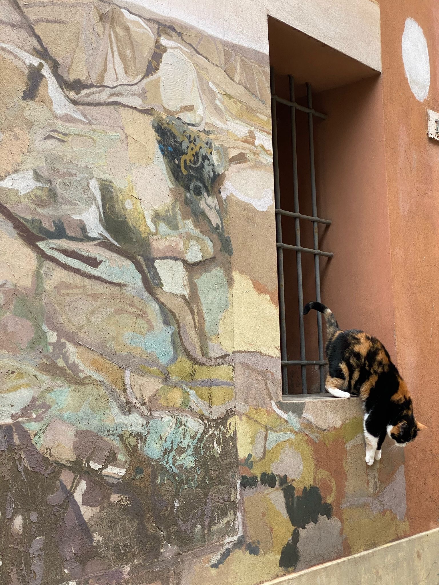 Reitin varrella on mieheni kuvailun mukaan ”maailman ihanimmat muraalit”. Ehkä pari ylisanaa, mutta herkkiä ja kauniita ovat kadun varrella olevien talojen seinien muraalit.