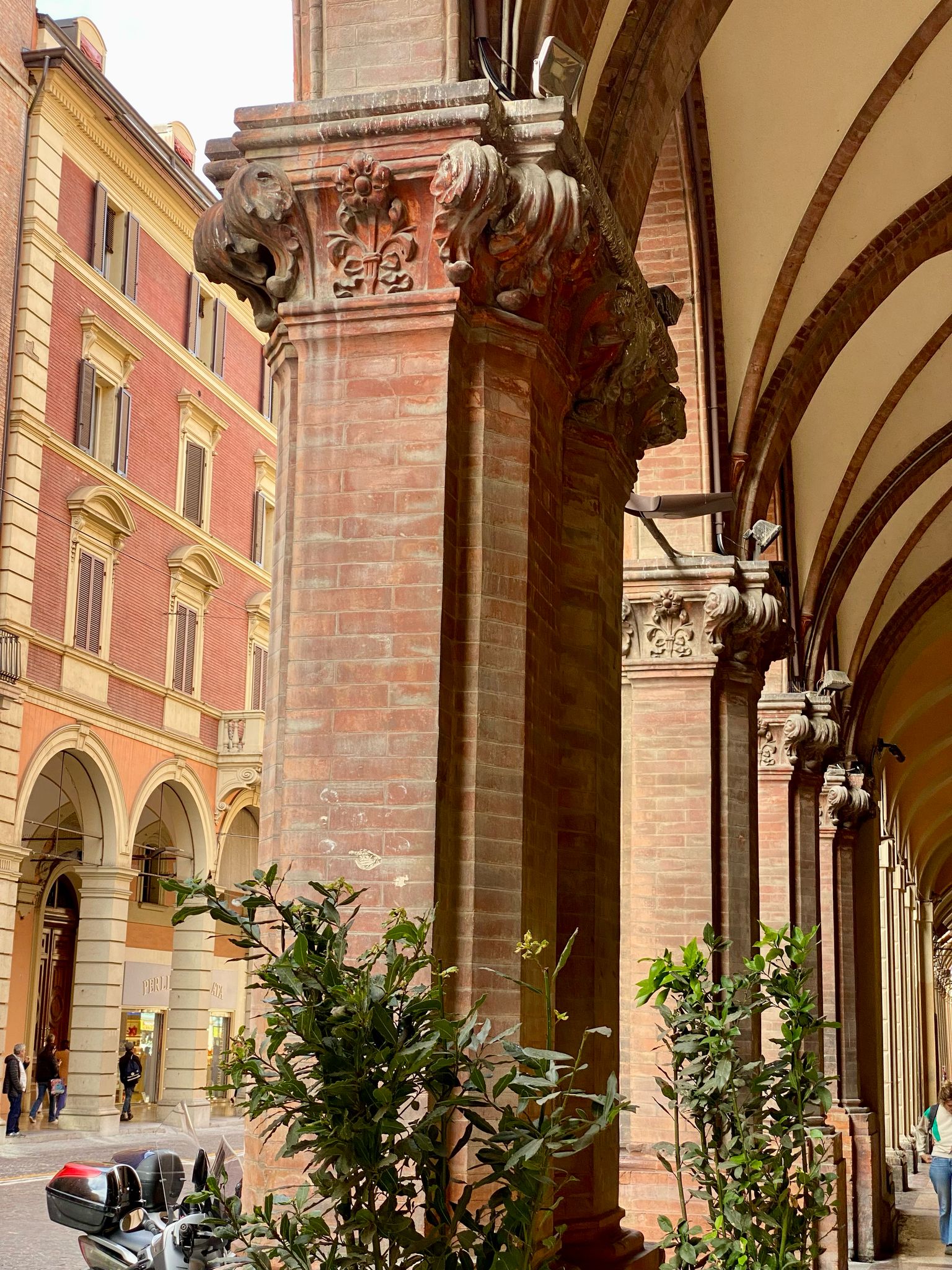 Uniikkia Bolognassa on se, että historiallisessa keskustassa on 38 km katettuja jalkakäytäviä, portiikkeja. Niitä siis todella on melki jokaisessa talossa.