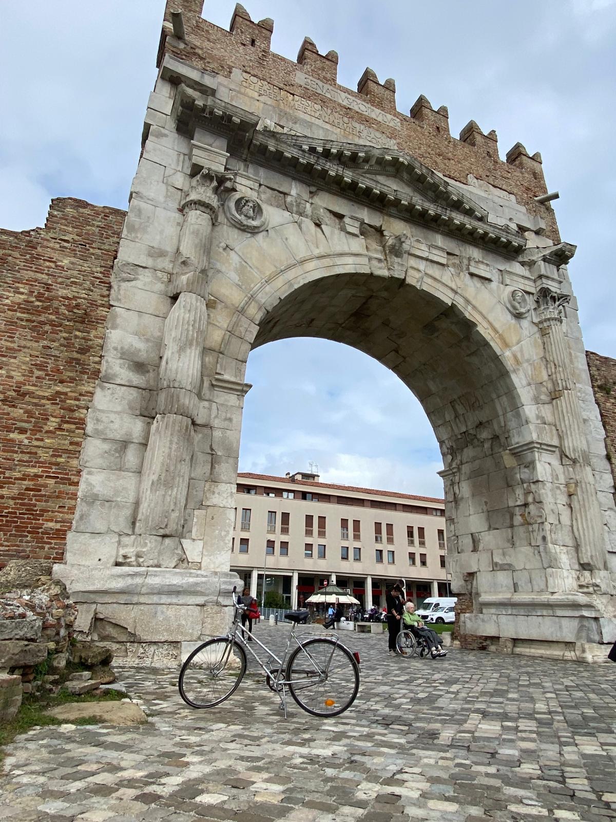 Riminin vanhakaupunki ei tuntunut yhtään turisteille rakennetulta. Se on myös oikeasti vanha. Ajanlaskumme alkuvuosilta on Augustuksen riemukaari. Toisessa päässä vanhaakaupunkia on taas roomalaiselta ajalta oleva Tiberiuksen silta. Sillan ja riemukaaren välillä on vanhankaupungin sydän, Piazza Cavour. Aukion ympärillä on massiivisempaa rakennuskantaa, useita palatseja sekä 1800-luvun puolivälistä Amintore Gallin teatteri.