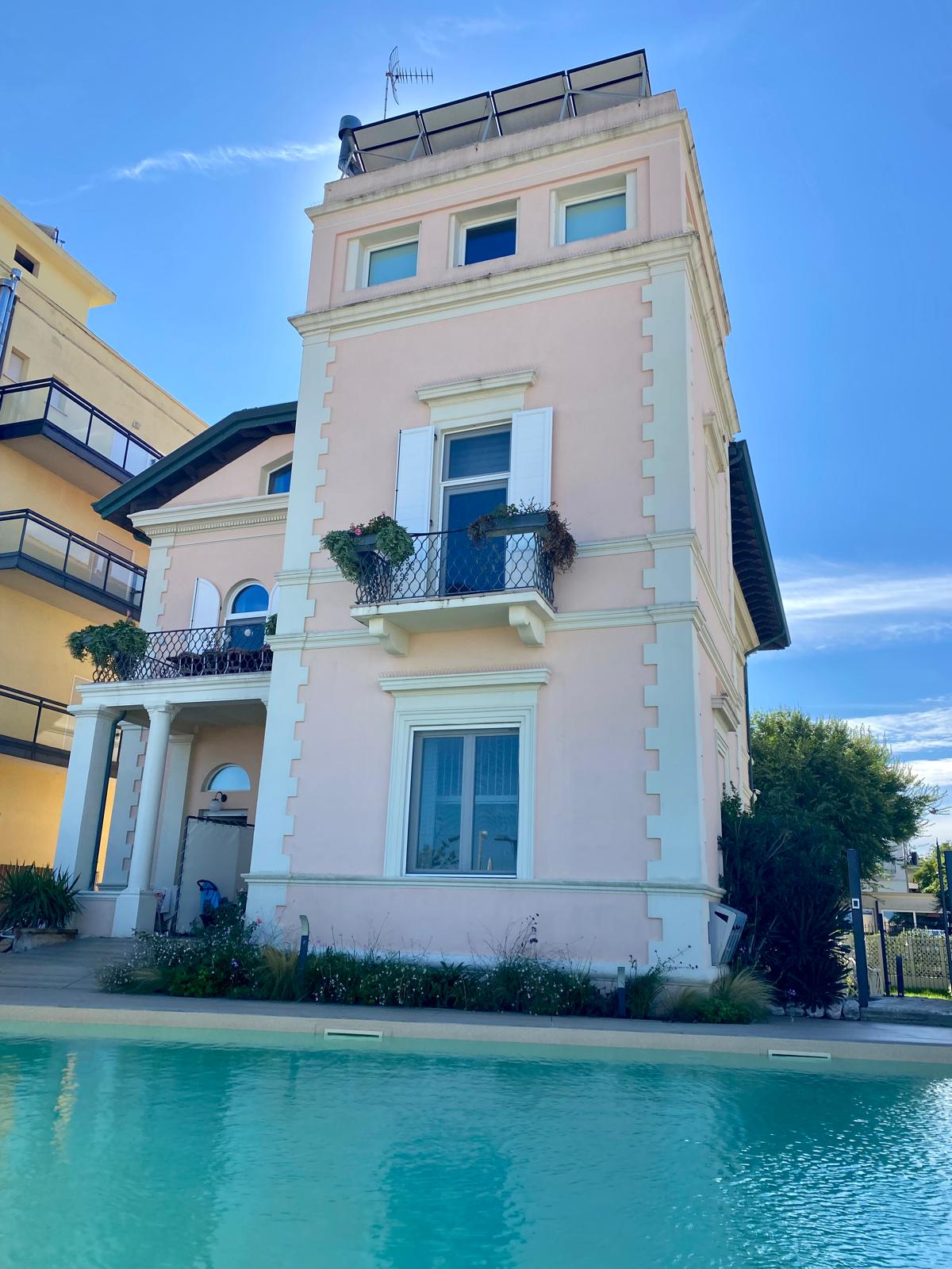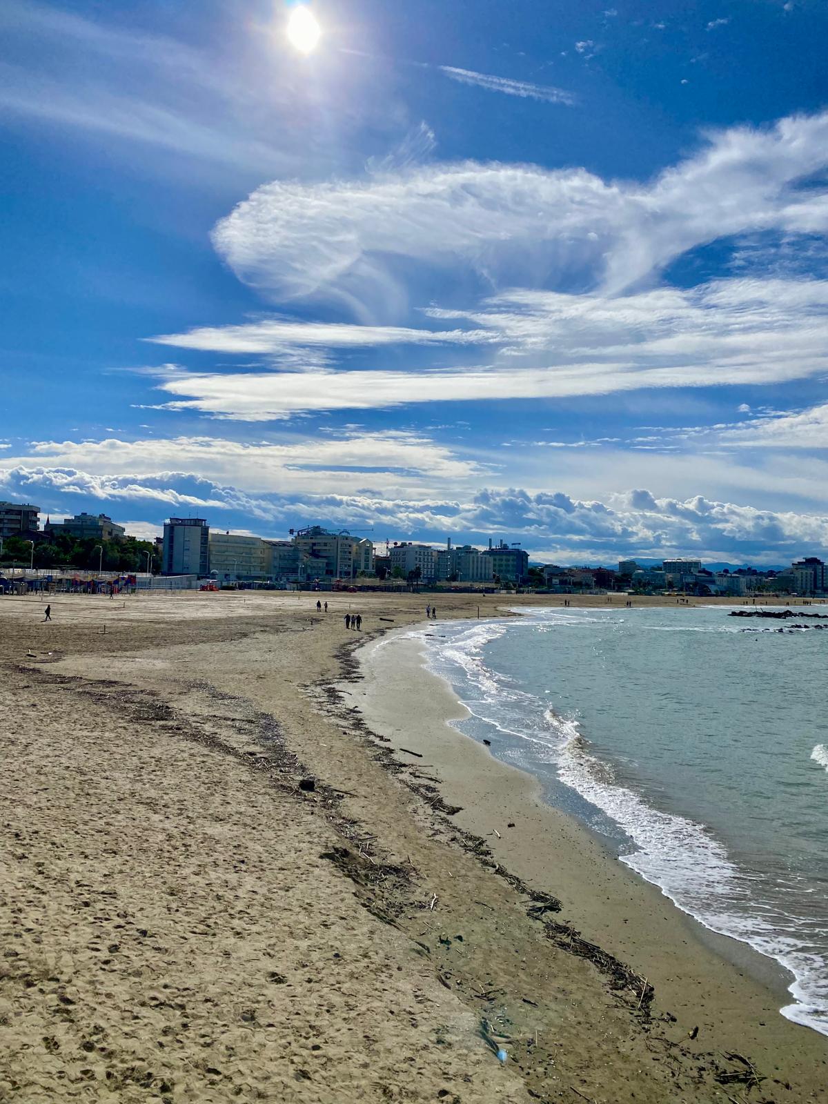 Edellinen kodinvaihto oli Tyrrhenanmeren rannalla, nyt vastarannalla, Adrianmeren rannalla Cattolicassa. Ranta on niin leveä, että meren aaltojen äänet eivät uima-altaallemme yllä.