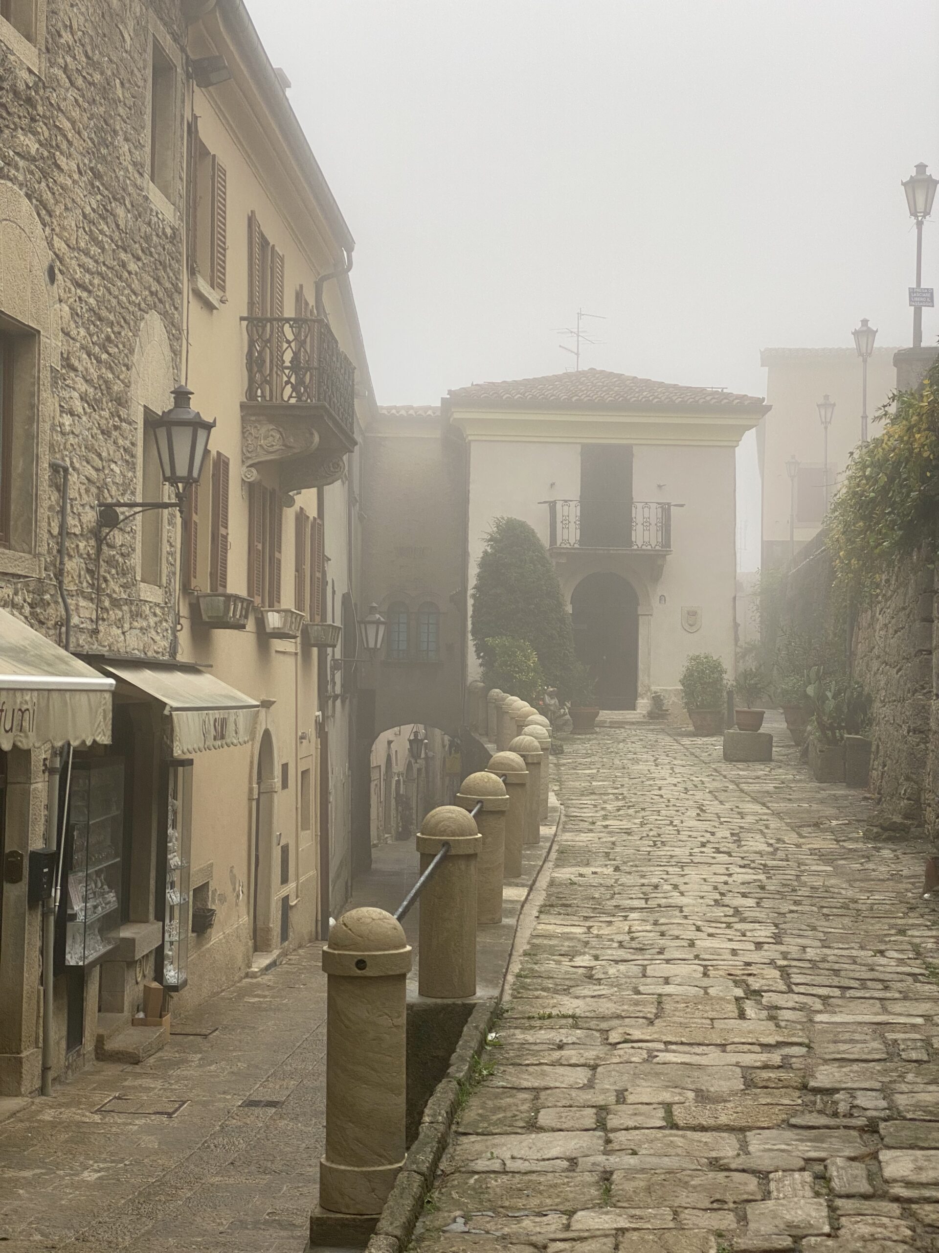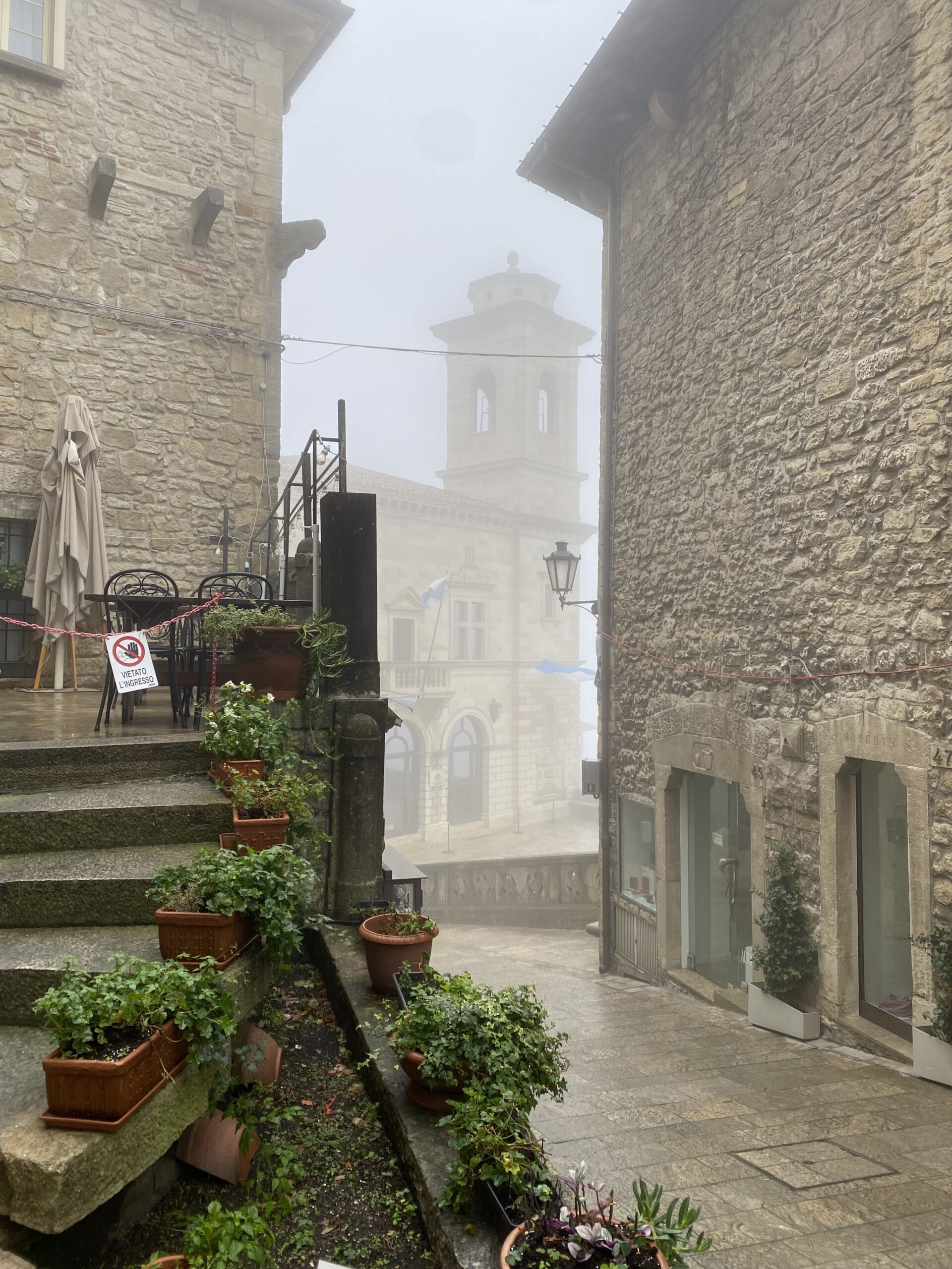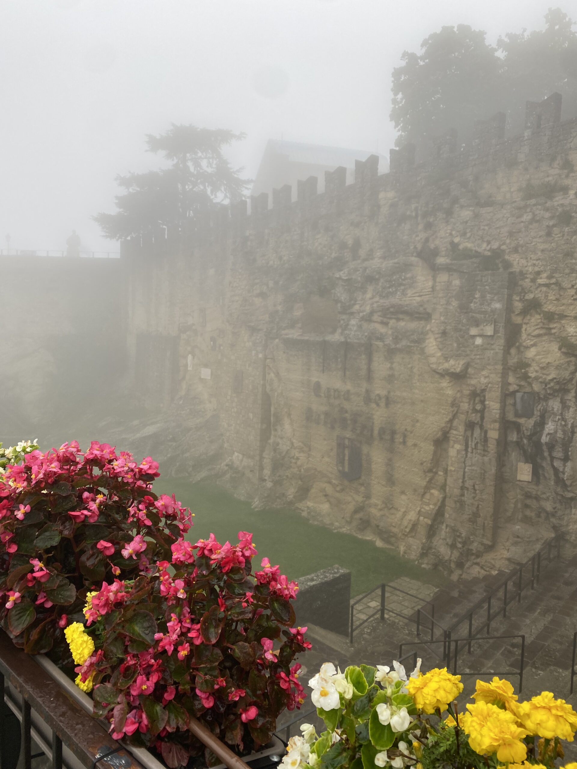 Olipa teille sumuinen keli sattunut visiitille, mutta toisaalta jotenkin hienon aavemainen linnoitukseen yhdistettynä! Kävin itse San Marinossa parin yön visiitillä viime vuoden kesällä, ja oli sen arvoista kyllä jäädä yöksi. Pääsi nauttimaan iltatunnelmasta päiväturistien lähdettyä ja maisemat linnoituksen torneista ovat huikeat! 🙂