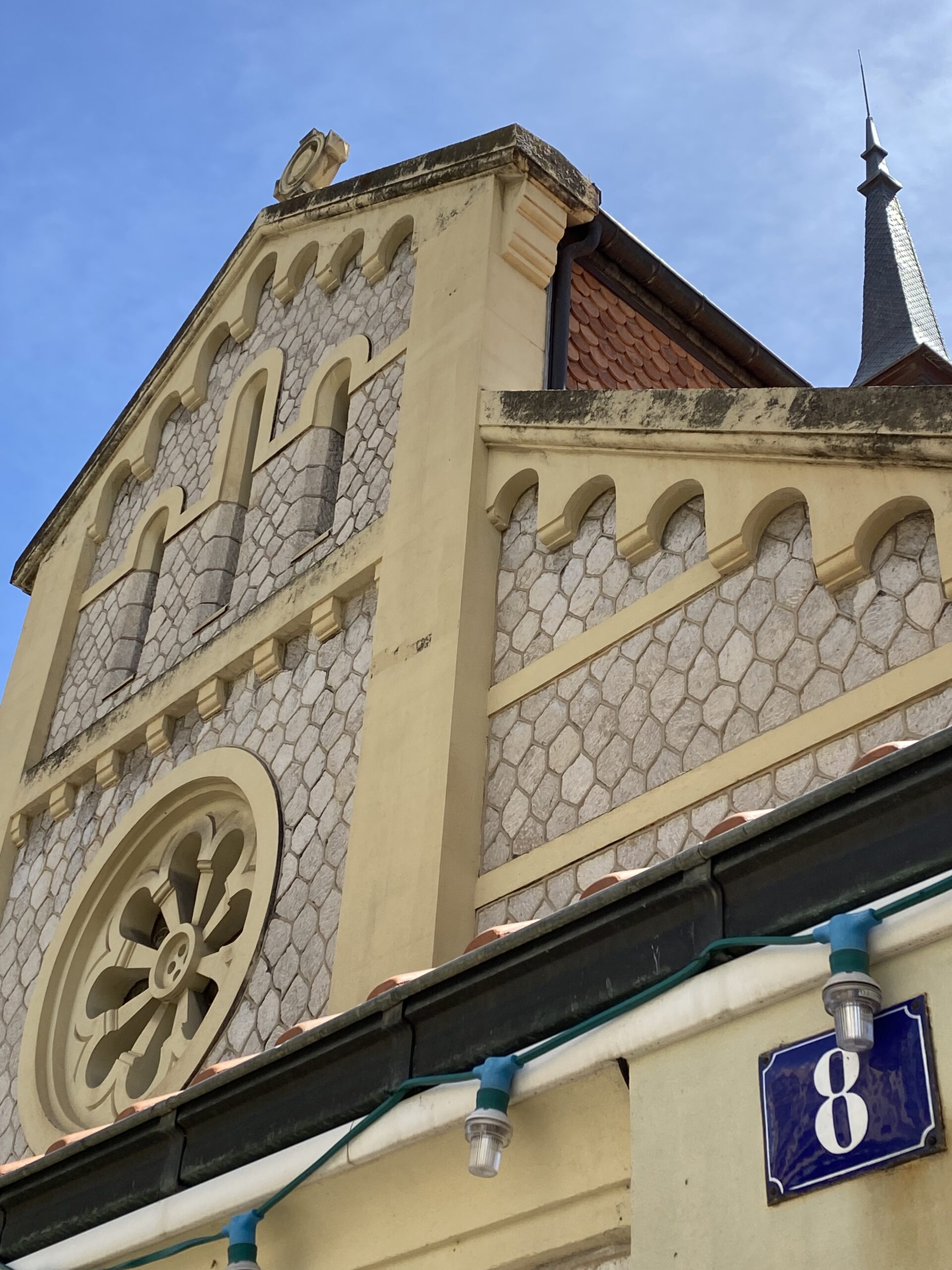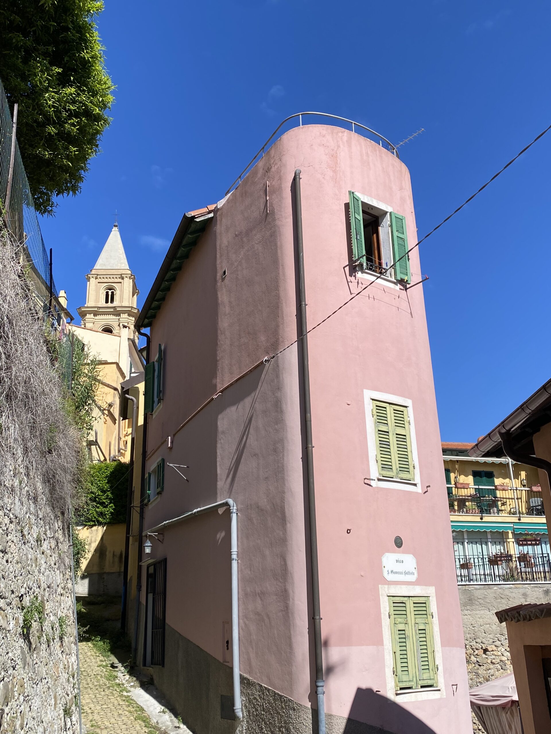 Kaunis on pikkukaupunki. Pastellisävyiset talot ja ikkunaluukut vielä myös monenväriset. Metalliset parvekkeet josjonkinlaisilla kauniilla koristeluilla.