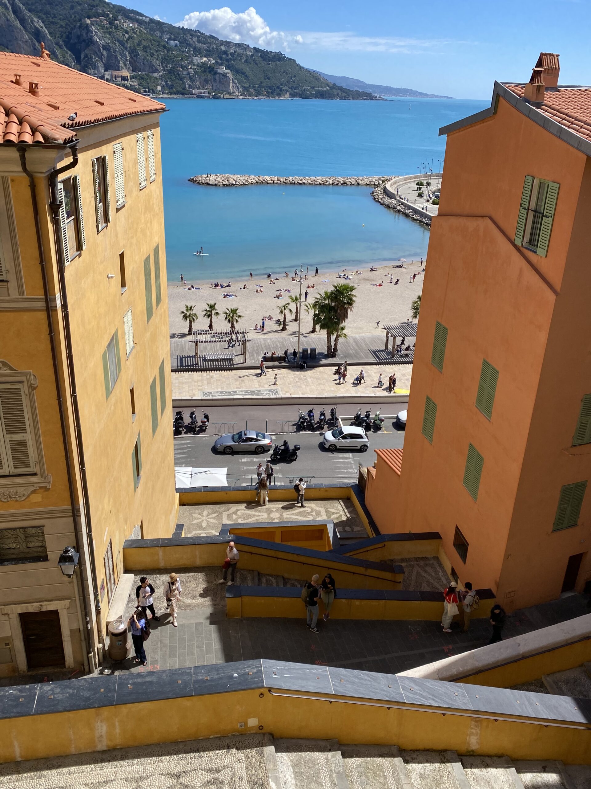 Menton on vähän Ventimigliaa suurempi, 30 000 asukasta. Suuremman oloinen – selkeästi siistimpi – no Italia on rappioromanttinen.