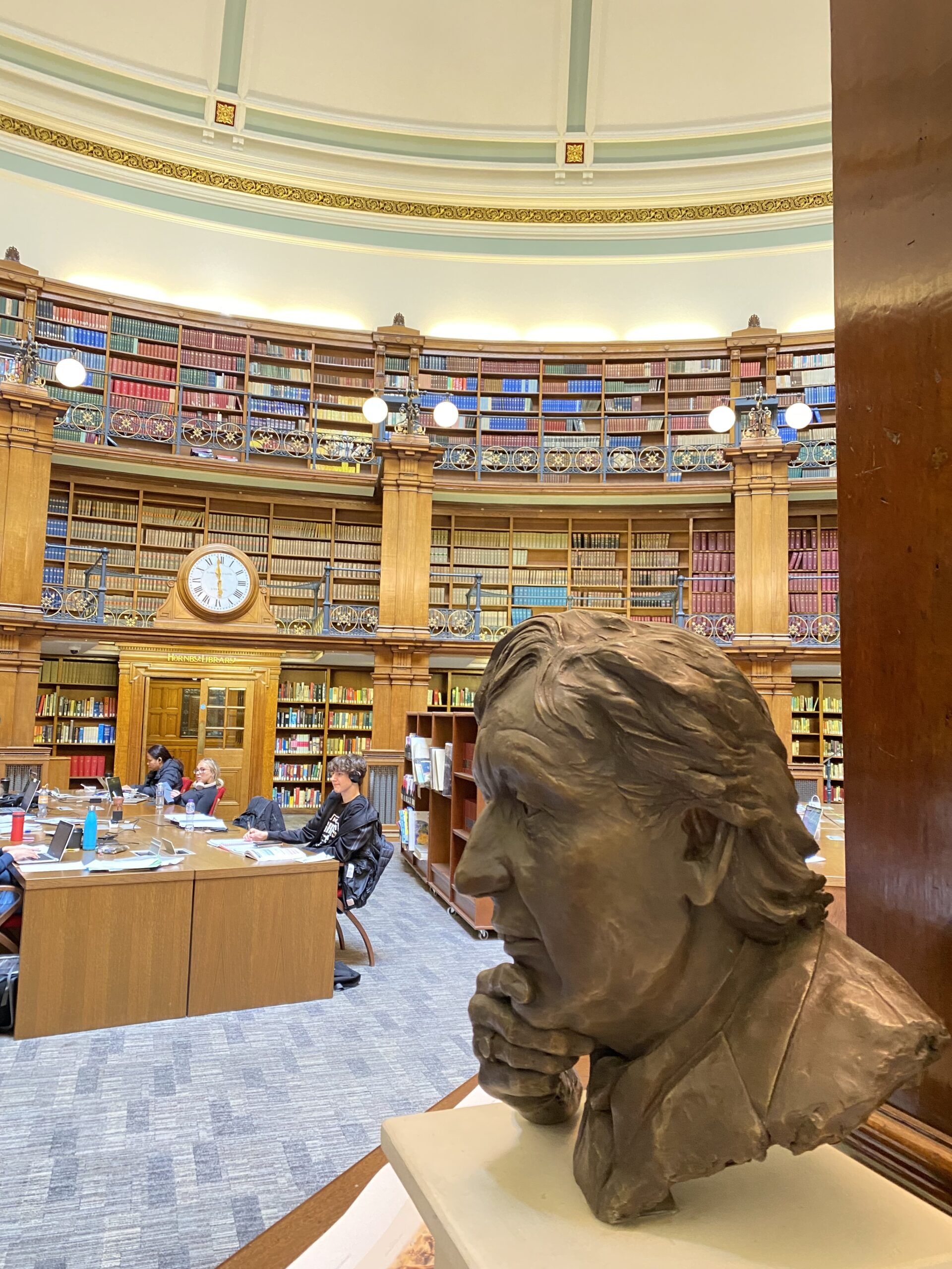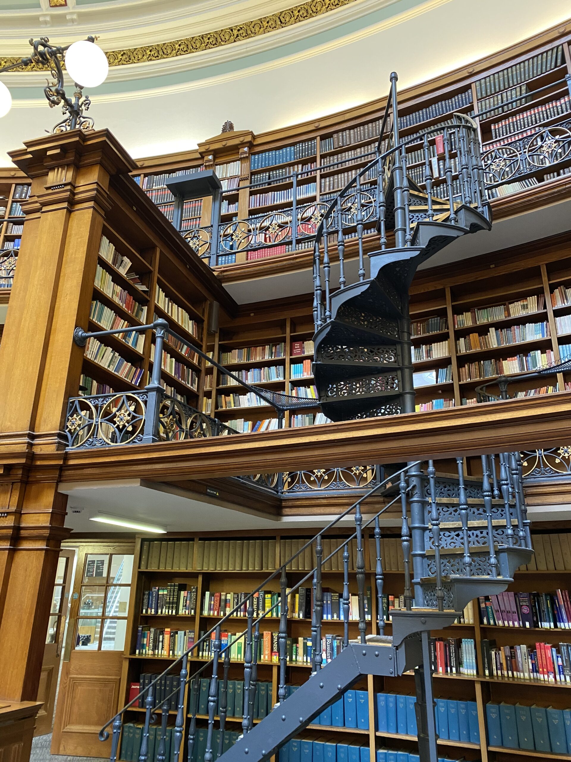 Liverpoolin keskuskirjasto on jotenkin tunnelmaltaan autenttinen. Nimenomaan toisen kerroksen vanha puoli. Siellä oli intensiivinen tunnelma, kun paikalliset opiskelijat keskittyivät opintoihinsa.