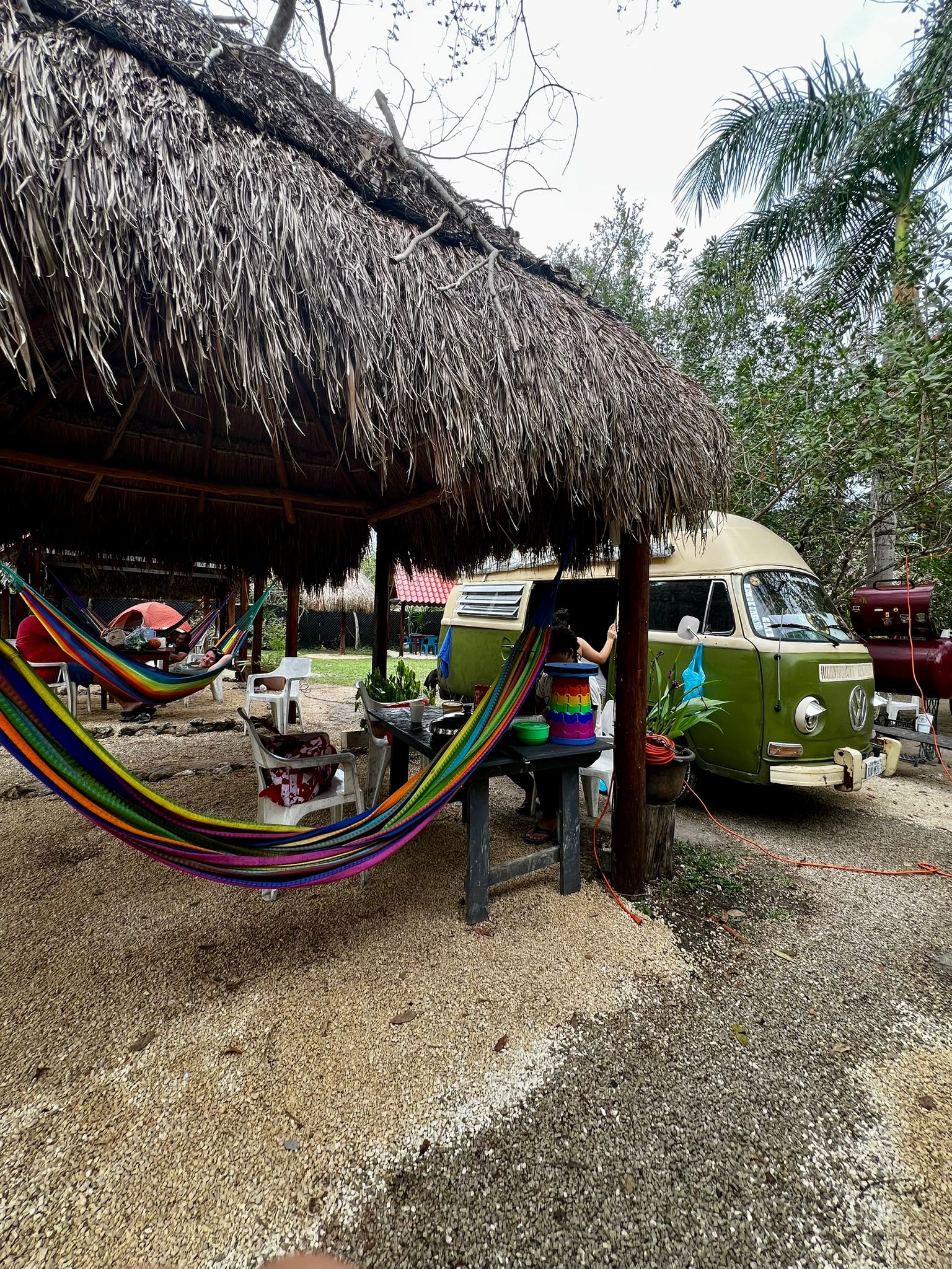 Ja kyllä ne meksikolaiset oikeasti riippumattoilee aina ja kaikkialla – salakuvasin Bacalarin pääkadulta käsin  jonkun yhdistyksen tms. yhteisötilaan.