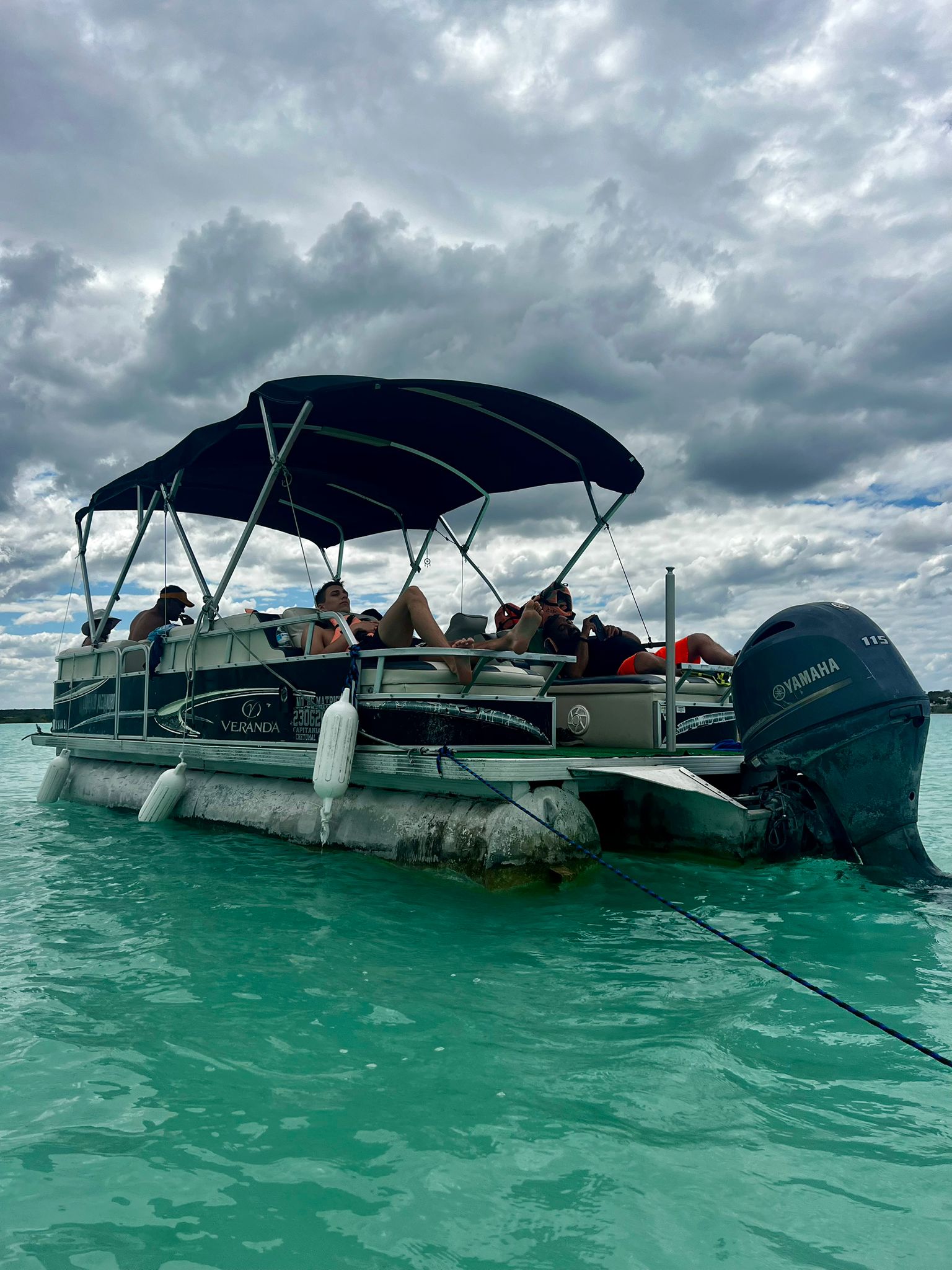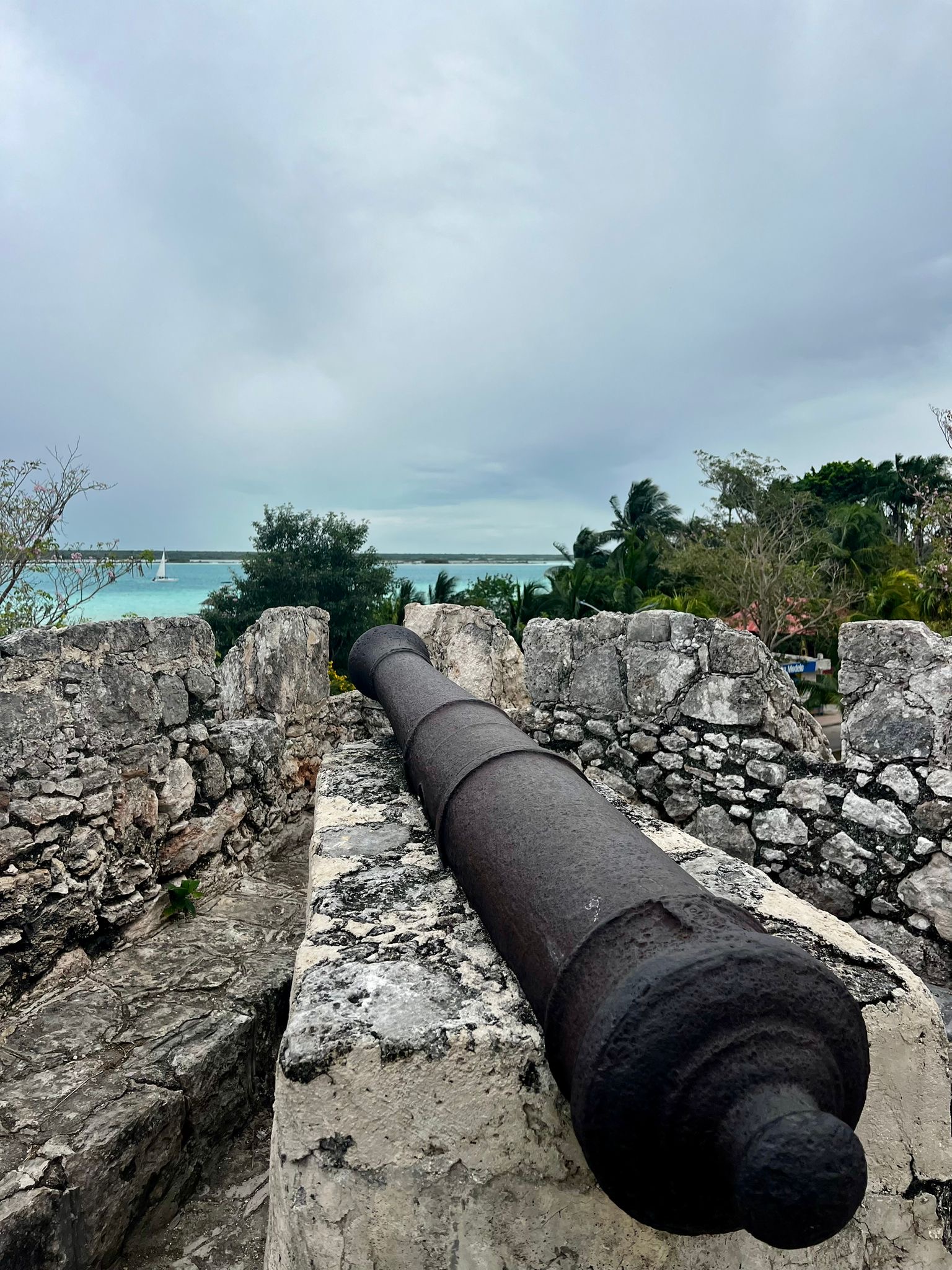 Moni ohittaisi Bacalarin kylän, jos kylän läpi ei virtaisi seitsemän eri sinisen/vihreän värin laguuni. Pilvisenä päivänä värit eivät pääse parhaiten esiin, mutta hienoa oli. Eri sävyt johtuvat erilaisista syvyyksistä ja mineraaleista pohjassa.