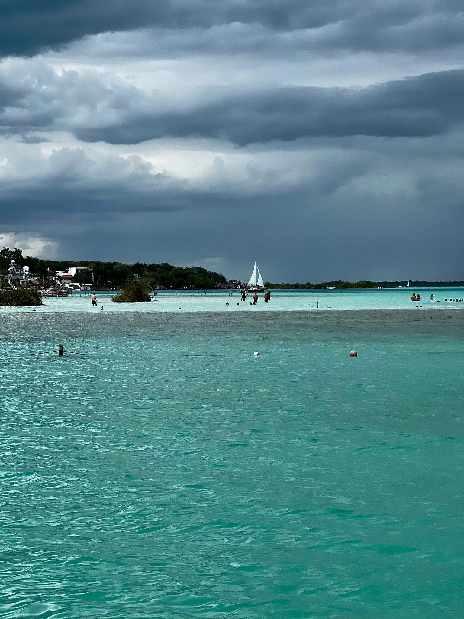 Seitsemän värin laguunilla Bacalarissa: turkoosia, vaaleansinistä, vihertävää ja syvänsinistä