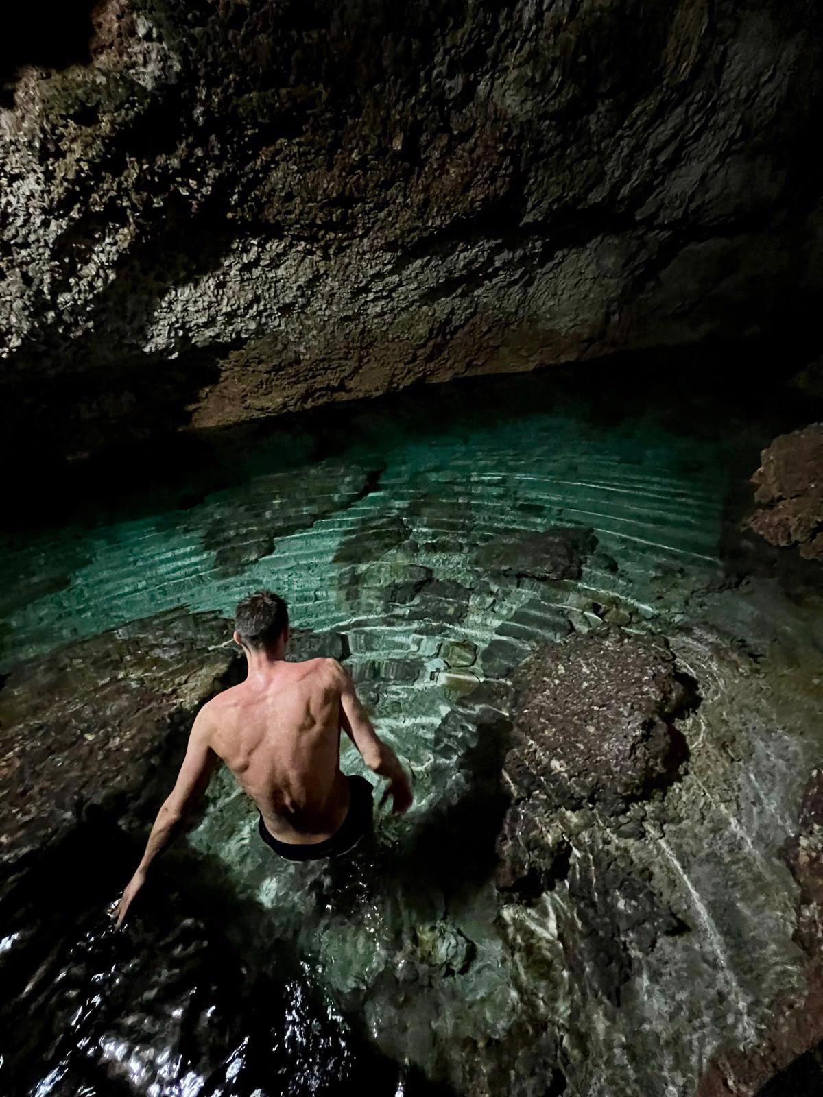 Laguunin syvyydet vaihtelevat paljon – joissain kohtaa voi kahlata polvenkorkuisessa vedessä, kun taas toisissa kohdissa cenote tiputti merenpohjan yli sadan metrin syvyyteen. Mitä matalampi vesi, sen vaaleammansininen vedensävy ja mitä syvempi, sen tummempi – supersyvä Cenote Negro oli nimensä mukaisesti ihan musta.