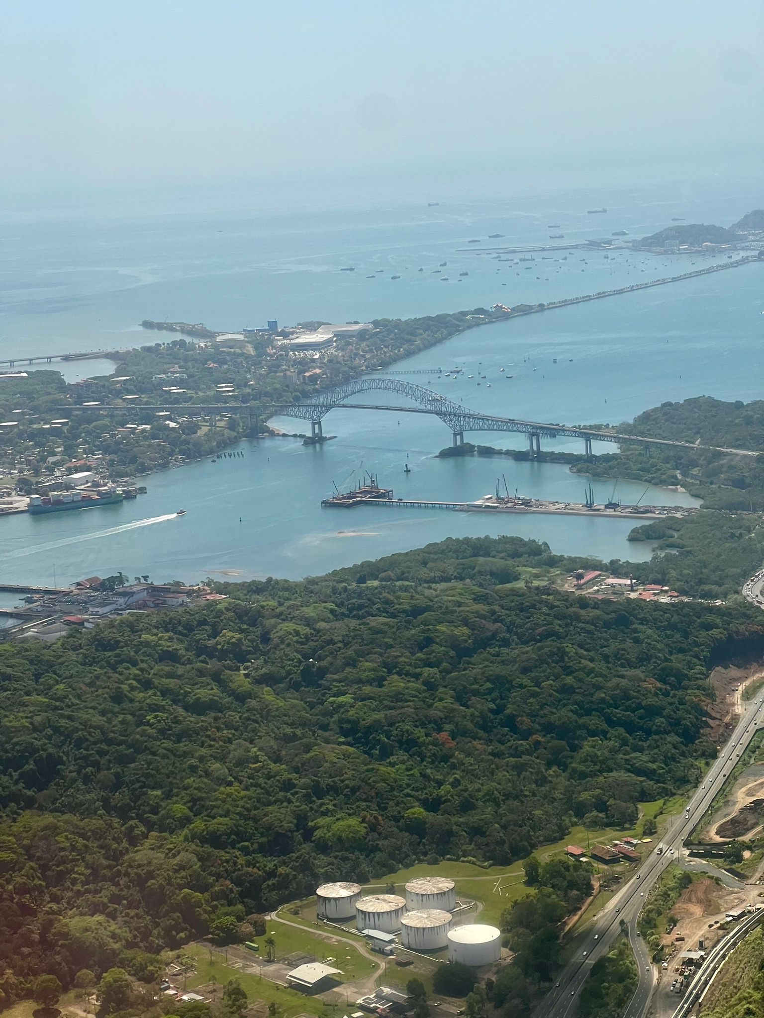 Lensimme Havannasta Tocumen International Airportille Panamalle ja sieltä pääsimme metrolla suoraan hotellille. Lensimme taas Cartagenaan Kolumbiaan Panama Pacific lentokentältä. Sinne menimme aamusta Uberillä. Aikasmoiset ruuhkat eli varaa aikaa. Reitti menee kuuluisan Puente de las Americas sillan yli. Sillasta sai parhaan kuvan lentokoneesta.