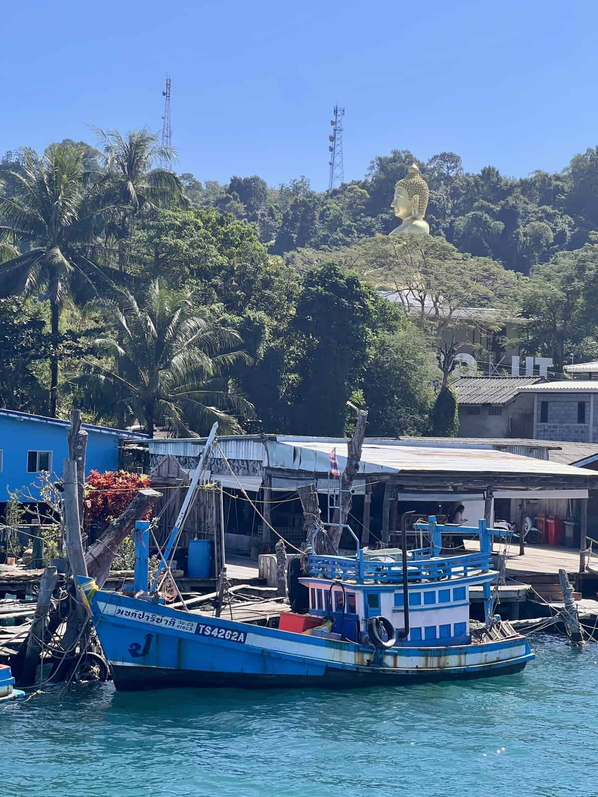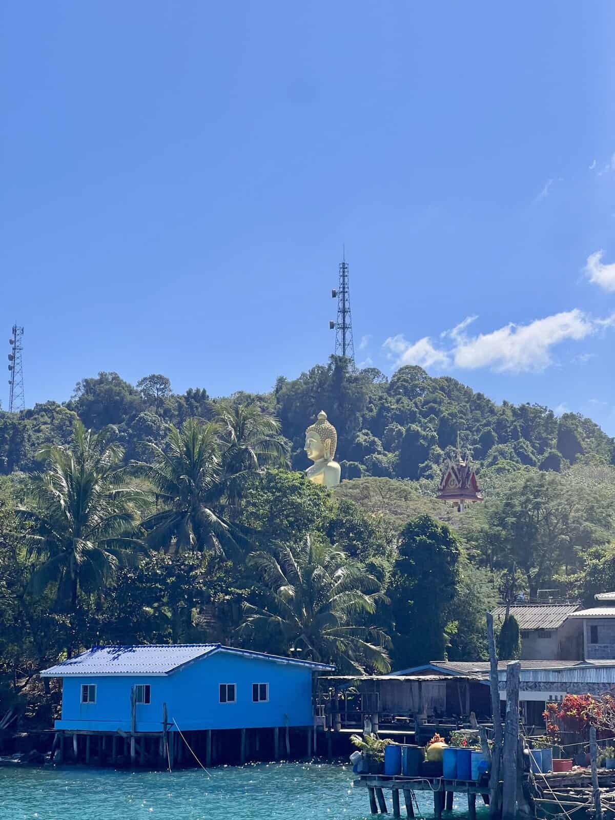 Koh Koodin saari on Thaimaan neljänneksi suurin saari, mutta pieni sekin: 25km pitkä ja 12km leveä. Koh Koodille pääsee lautalla saaren pohjoisosaan. Oikeastaan mikä vain lauttamatka maksaa näillä saarialueilla 10-25€/hlö ja on kestoltaan 0,5-1h. Perinteisiä kalastajakyliä Koh Koodin saarella on kaksi: Ao Salud ja Ao Yai. Jälkimmäisessä kylässä on hieno viewpoint. Ensimmäinen tunnetaan 30 metriä korkeasta kultaisesta Buddha patsaasta. Sinne saavuimme lautalla.