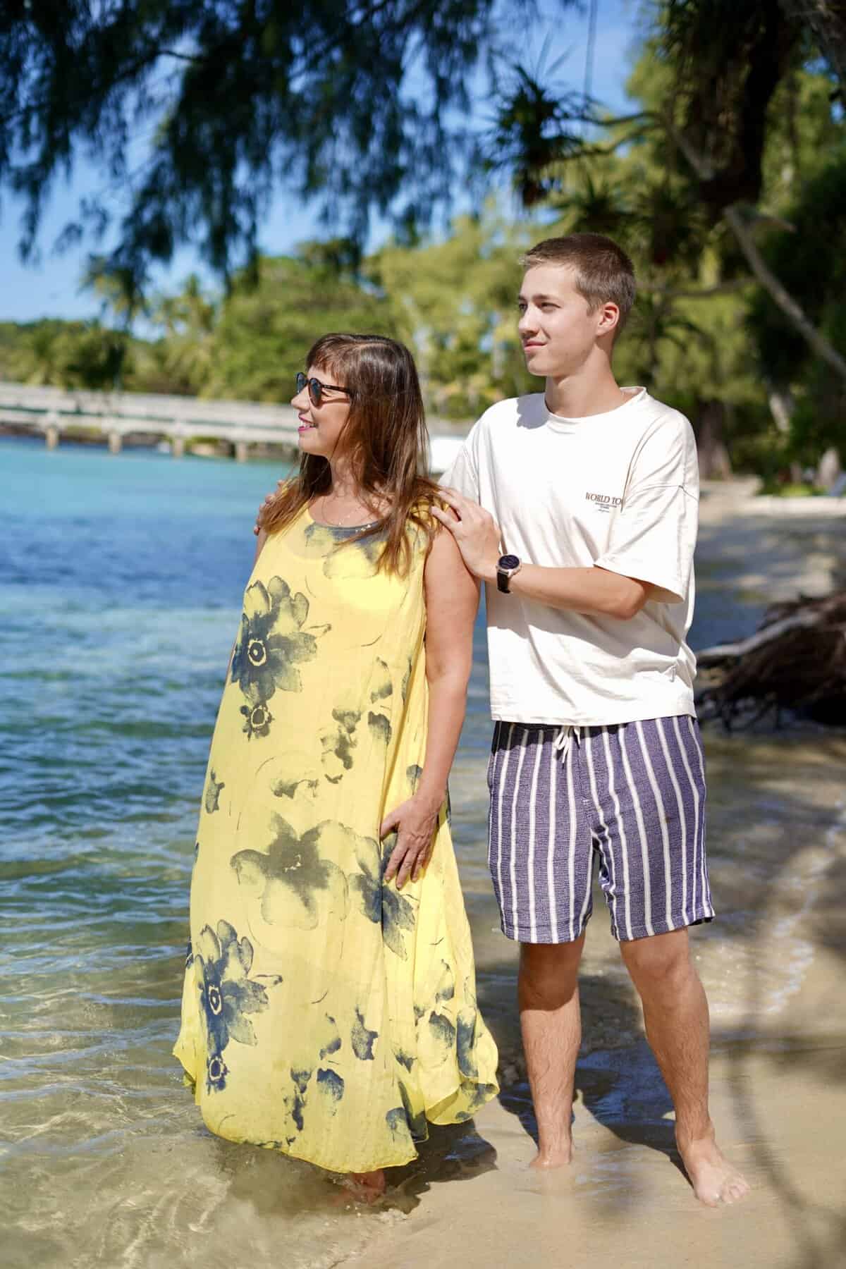 Rannalla on Nam Luek laituri, josta lähtee osa lautoista, Ao Saladista suurin osa. Toiseen suuntaan katsoessa näkyy toinen laituri, se toki enemmän chillailuun ja kalastukseen käytetty. Omalla rannalla otti myös paikallinen valokuvaaja meistä pro bono äiti-poika kuvia projektiinsa.