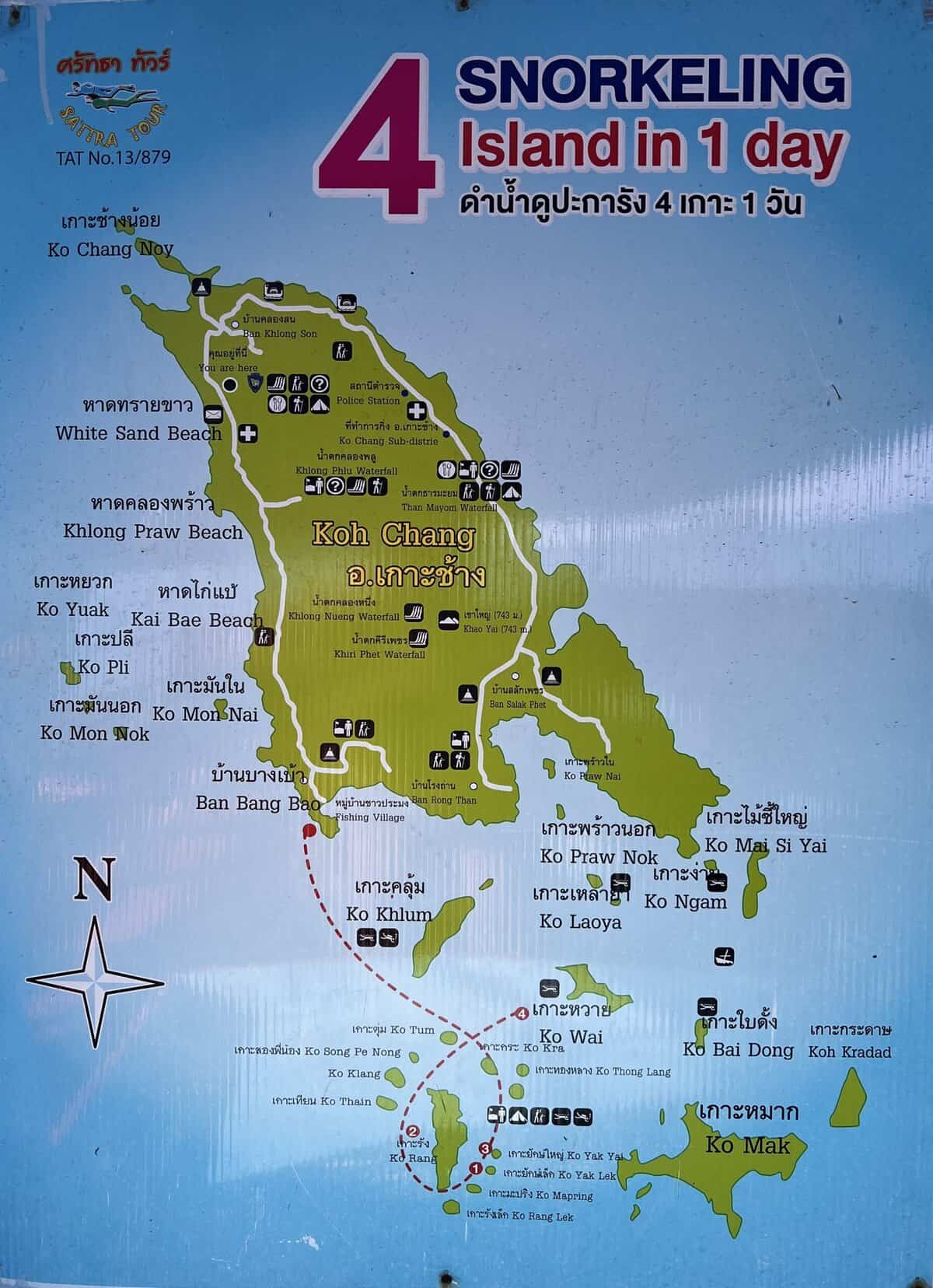 Koh Chang on 30 km pitkä ja 14 km leveä, vain Phuket on Koh Changia suurempi. Koh Chang tarkoittaa norsujen saarta ja itse saari onkin norsun muotoinen (tai suurin piirtein, minun mielestä vain hähmäisesti).